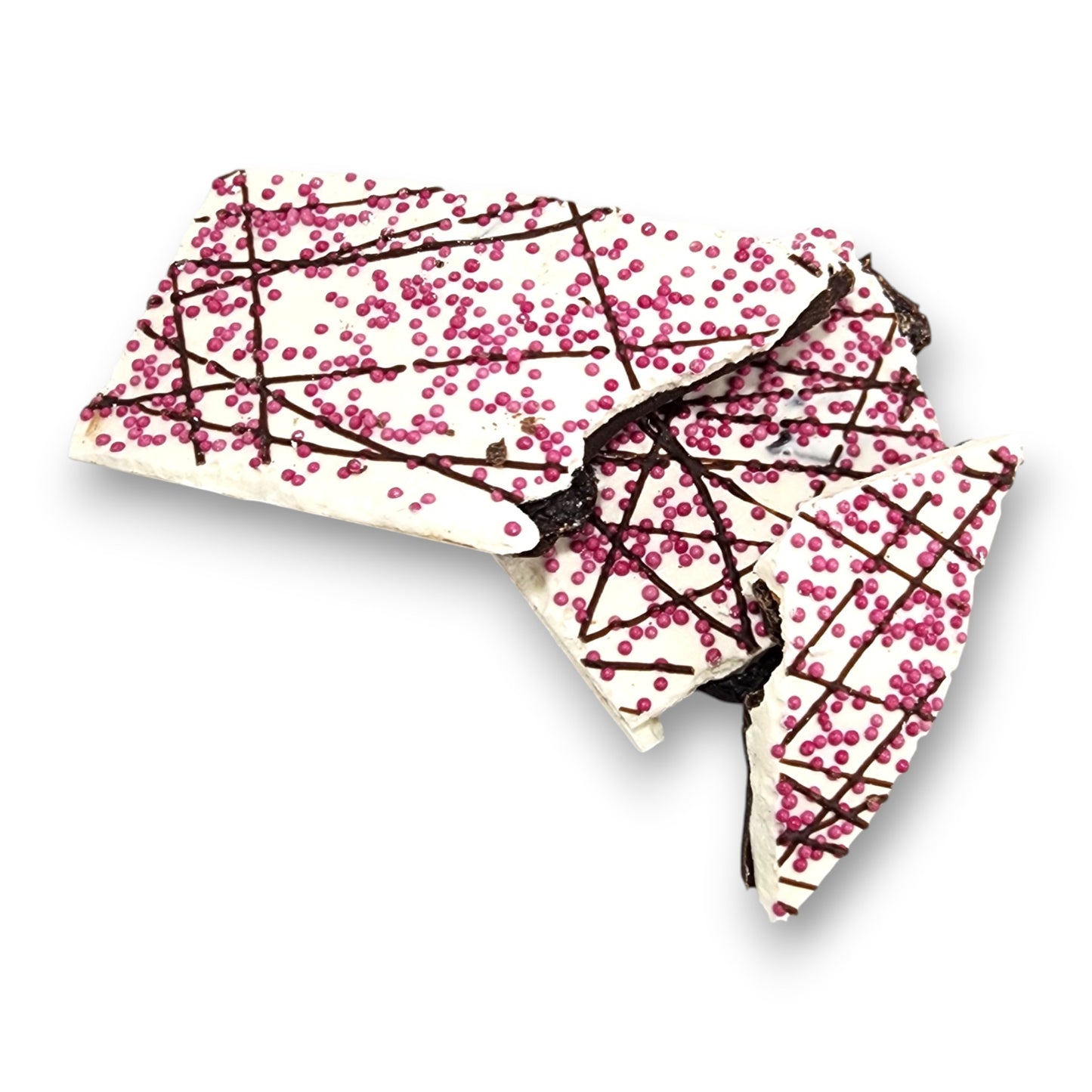This bark features dark and white chocolate-flavored layers infused with cherry oil, plus a layer of real dried cherries. Throw on some pink sprinkles and dark chocolate drizzles you've got the perfect spring treat. This bark comes presented in a pink box with cherry blossom designs on the lid.