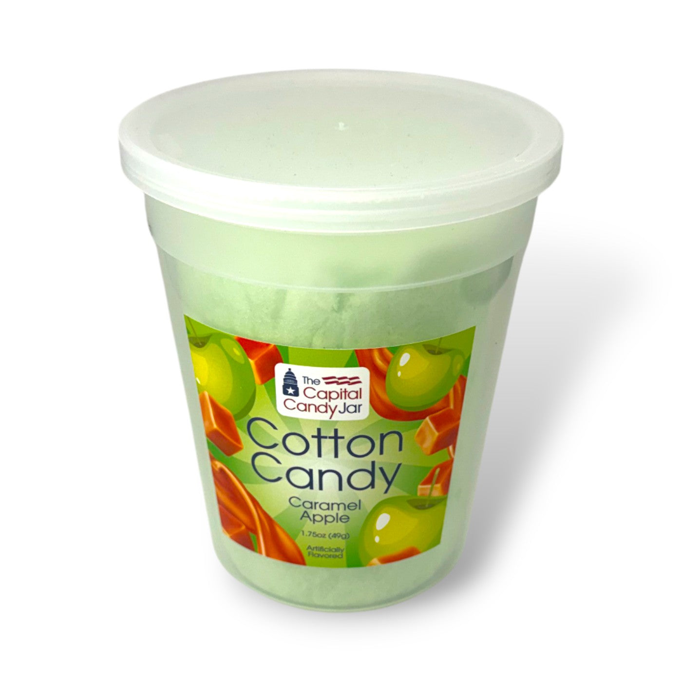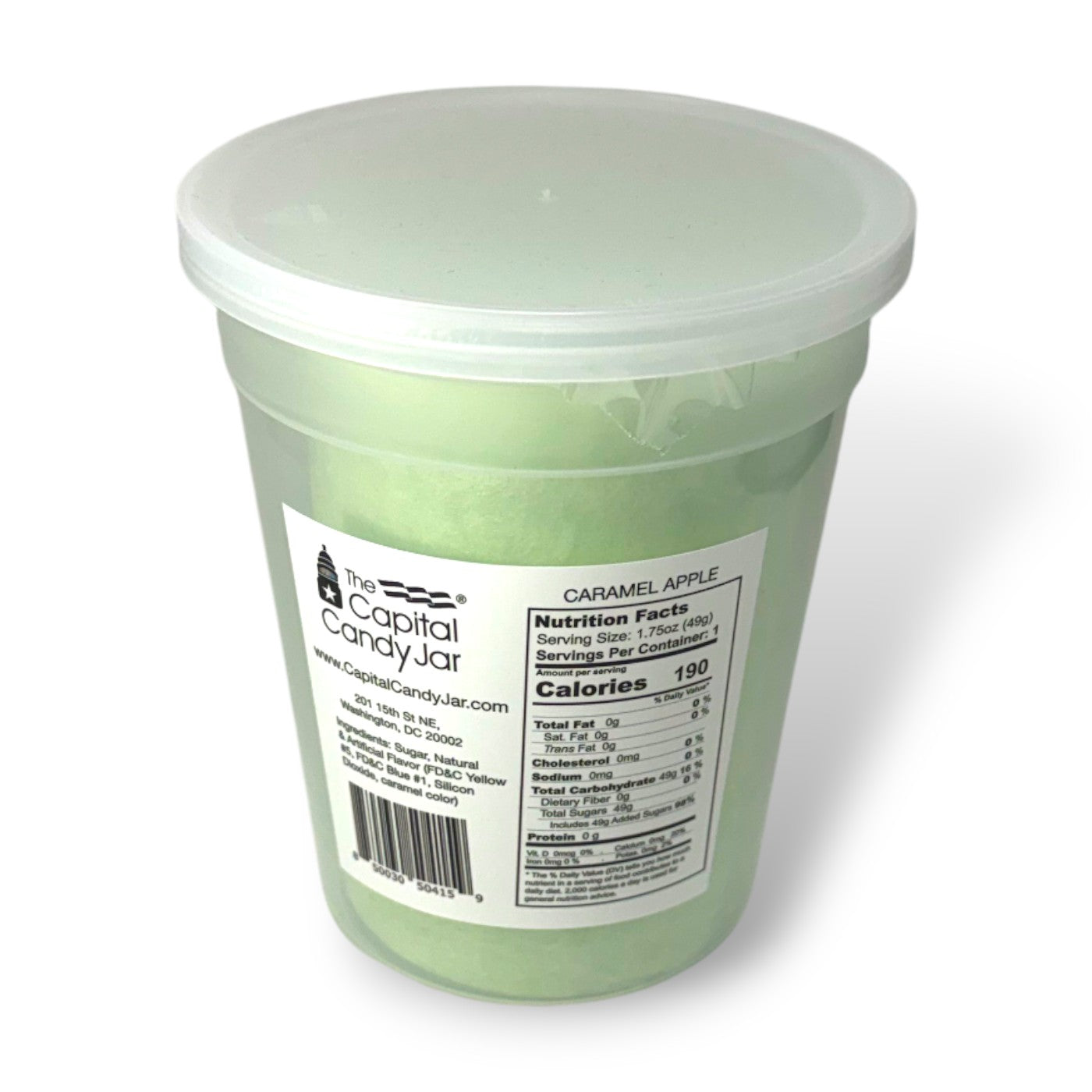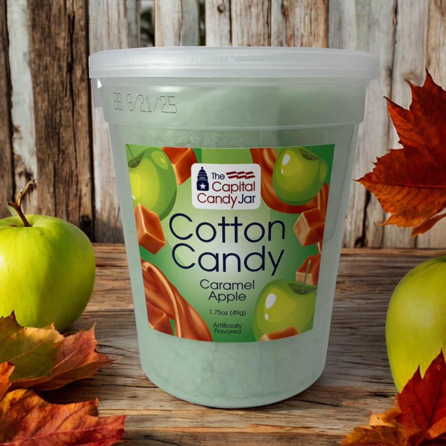 This caramel apple flavored cotton candy is a delicious fall treat. It combines the flavors of green apples and buttery caramel. Indulge in the perfect autumn combination - the tartness of green apples and the sweetness of buttery caramel, all wrapped up in fluffy and flavorful cotton candy.
