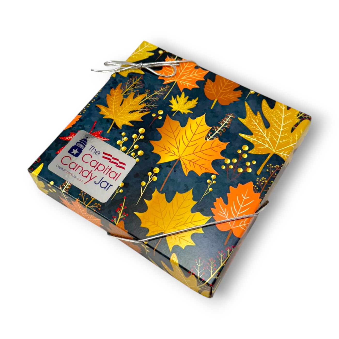 This decadent 1/2 LB box of truffles is as beautiful to look at as it is to taste. Each box comes with 16 of our most popular truffles in dark, milk, and white chocolate and presented in a gift box with a truffle flavor guide and a fall leaves themed lid.
