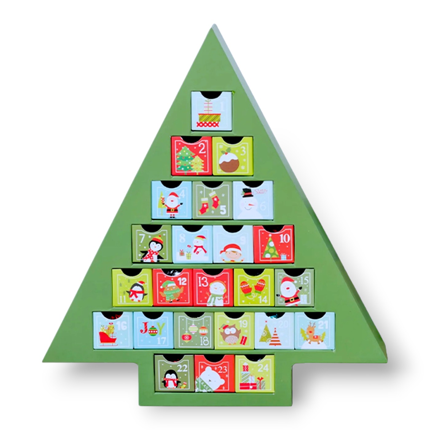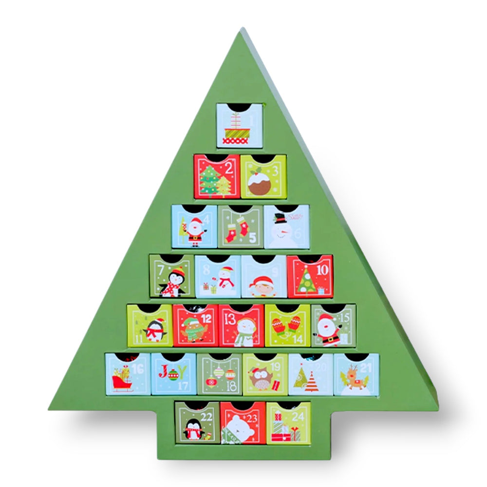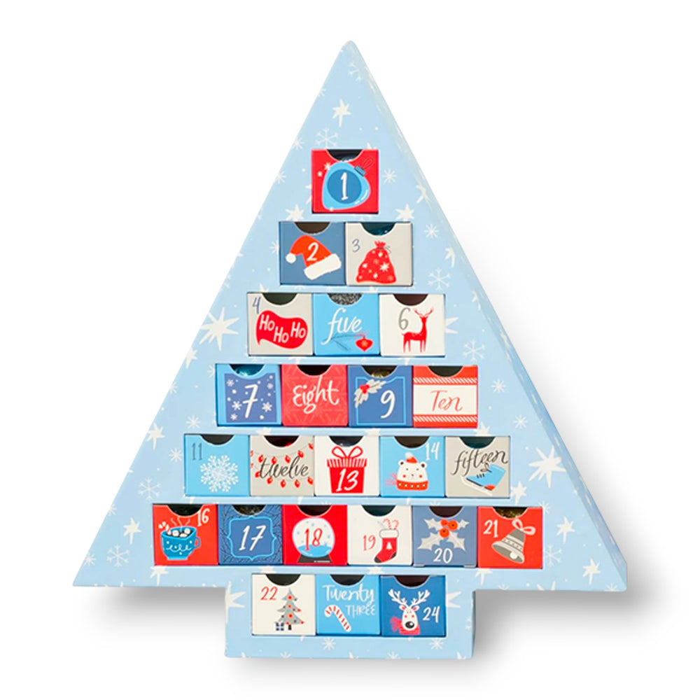 Get ready for a merry holiday season with these festive advent calendars! Count down to Christmas with a unique twist - each little drawer holds a tasty truffle. Made of sturdy cardboard, you can easily refill and reuse them next year. Each tree-shaped calendar comes with 24 delicious truffles in various flavors. Enjoy a delectable mix of rich dark and creamy milk chocolate. Choose from two charming themes: winter wonderland or Christmas cheer.