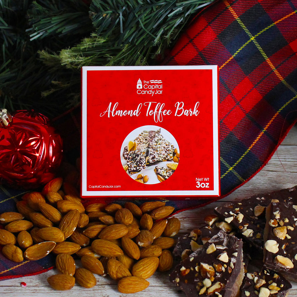 Our almond toffee bark is a must-have this holiday season! We craft it by layering rich, buttery toffee and then a layer of smooth dark chocolate - topping it off with a sprinkle of chopped, toasted almonds. It's sure to be a hit - whether you keep it all for yourself or gift it to someone special.