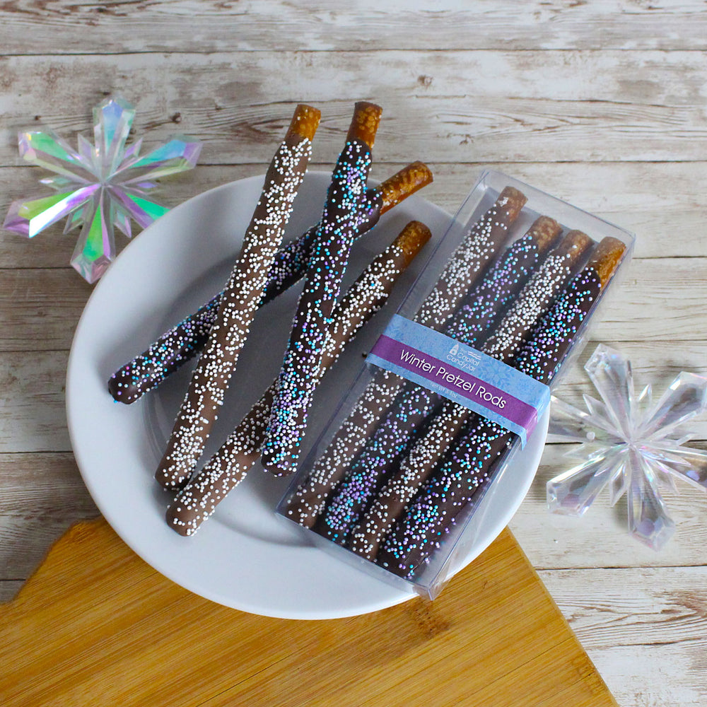 Chocolate Covered Pretzel Rods-Winter (4 Pretzels)